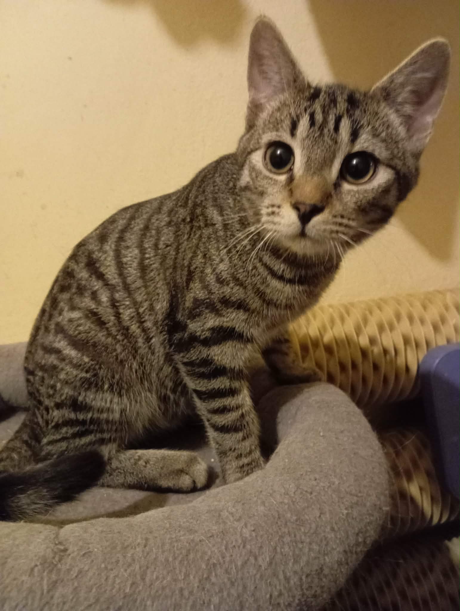 Półroczny kotek, który długo walczył z kocim katarem. Wesoły, mały żarłok 🙂 Kondycja się poprawia, więc wkrótce zostanie zaszczepiony, a później wykastrowany. Do adopcji po świętach majowych 2026. Jeden z piątki rodzeństwa. Kontakt: tel. 602-710-956