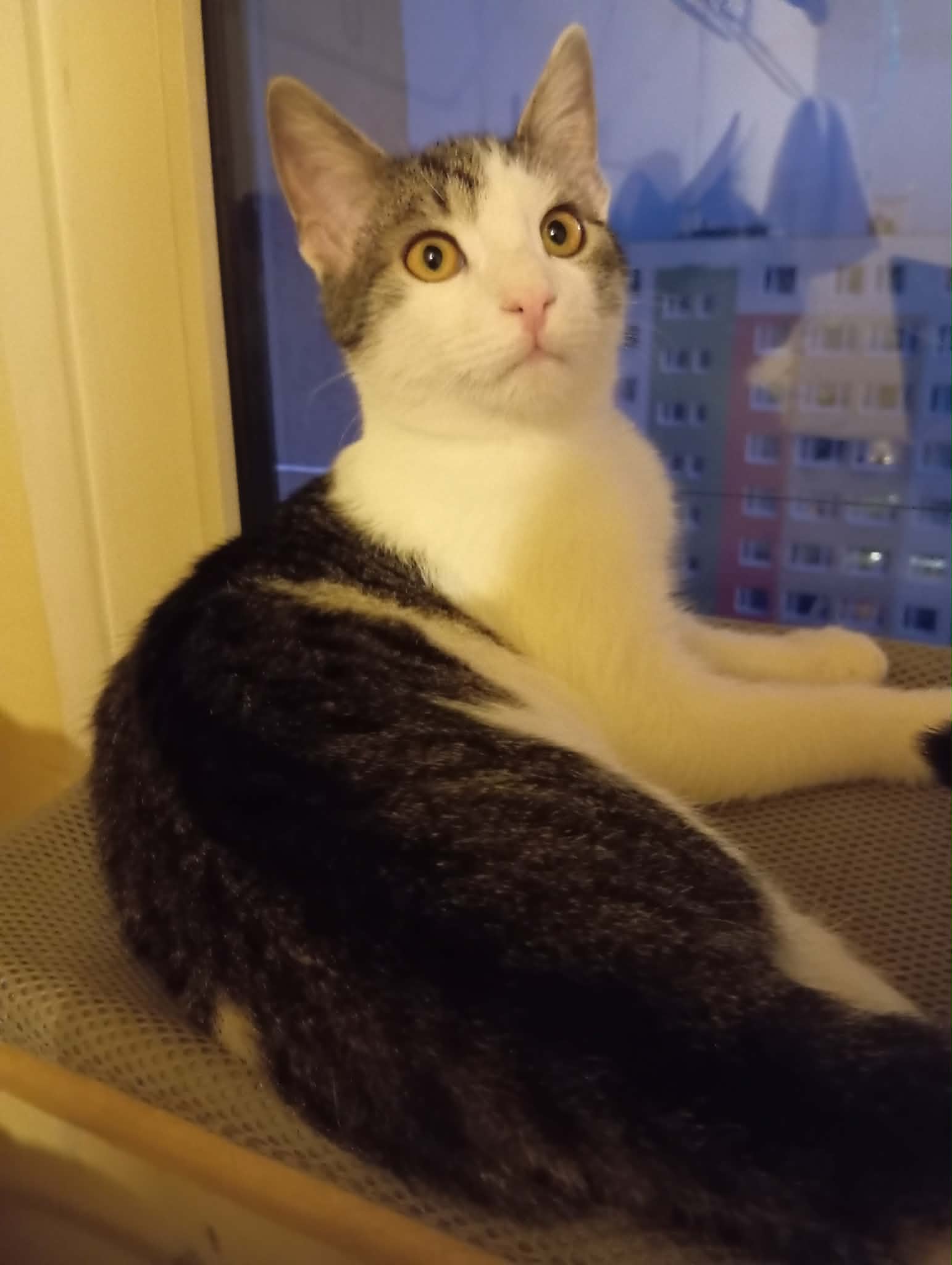Półroczny kotek, urodzony w październiku 2025, chętny do zabawy i głaskania. Wkrótce zostanie zaszczepiony, a później wykastrowany. Do adopcji po świętach majowych 2026. Jeden z piątki rodzeństwa. Kontakt: tel. 602-710-956